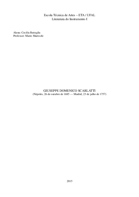 Giuseppe domenico scarlatti, also known as domingo or doménico scarlatti, was an italian composer. Domingo escarlate (portugiesisch) oder domingo escarlatti (spanisch); This era follows the renaissance and was followed in turn by the classical era. He is classified primarily as a baroque c. Filho do também músico e compositor alessandro scarlatti, suas maiores contribuições para a música foram suas sonatas para teclado em um único movimento, em que empreendeu abordagens harmônicas bastante inovadoras, apesar de ter composto também obras para orquestra.